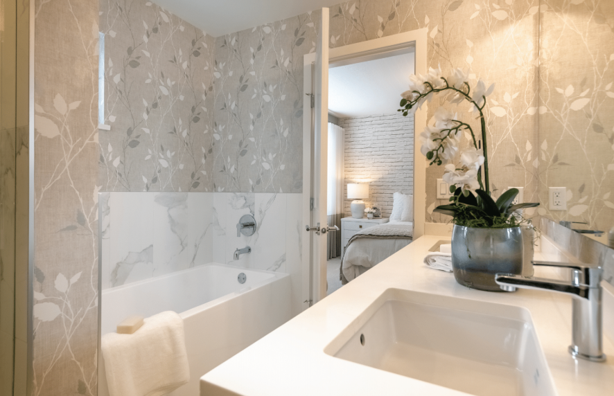 In the kitchens, polished quartz counters and sleek tile backsplash provide a savory setting for your culinary artistry. A gas range, spacious fridge, and ultra-efficient dishwasher make mealtime a breeze. Smart storage solutions include a full-height pantry, kitchen island, and shaker cabinets with tasteful under-mount lighting. You’ll want to eat in every night.