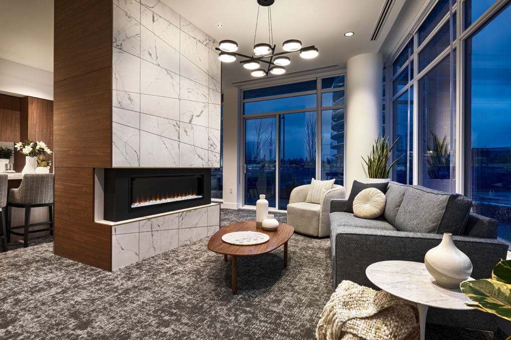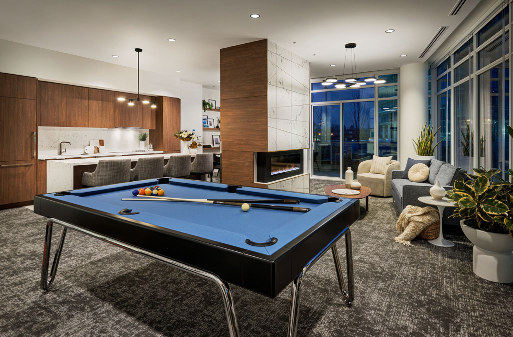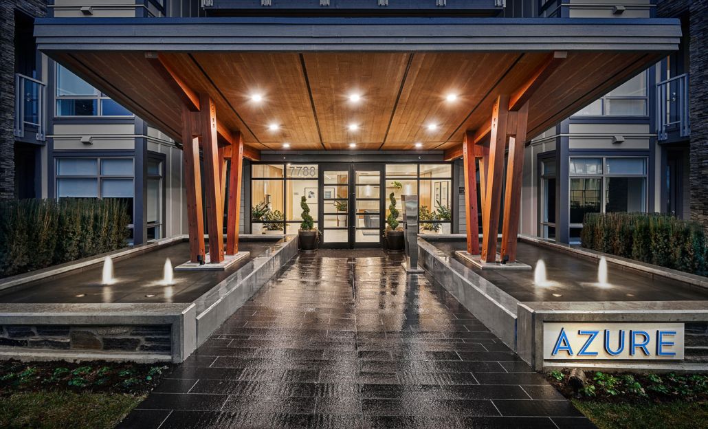 Your home at Azure extends beyond your front door. A sweeping, covered entryway with a cascading water feature offers an elegant greeting upon arrival at Azure. The grand, over-height lobby is sure to impress guests with a dedicated concierge to welcome you home and a luxurious fireside lounge, complete with a full kitchen and a lavish billiards room.