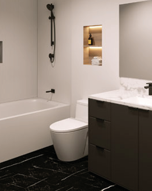 Bourna 2.0 uses modern minimalist architecture. The exterior showcases clean lines and a black and white color palette. The goal was to create an understated but confident exterior – one that will stand the test of time.