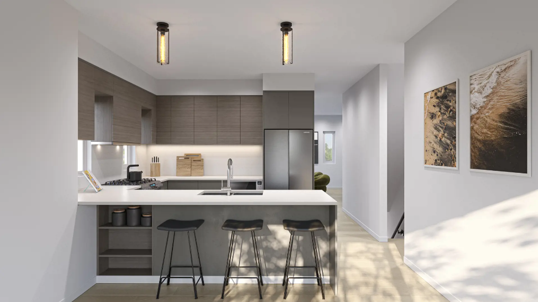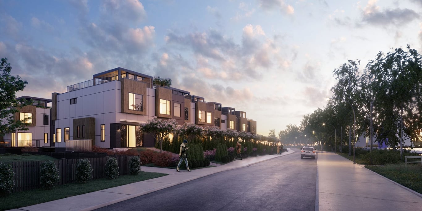 Sixteen modern townhomes by Pennyfarthing edge a calm stretch of the Fraser River in family-friendly Queensborough. Each three bedroom home is topped with an expansive rooftop patio, where you can relax, work or entertain with scenic views as your backdrop.