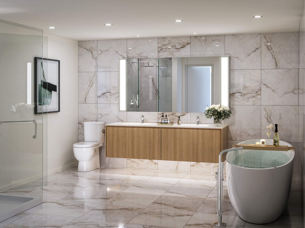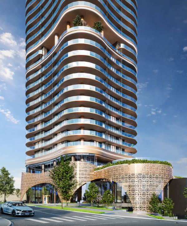 An arched filigree lattice anchors the tower, framing the grand entry. Expansive private outdoor sanctuaries follow the curvature of the tower’s silhouette. The gentility in design culminates in understated classic luxury.