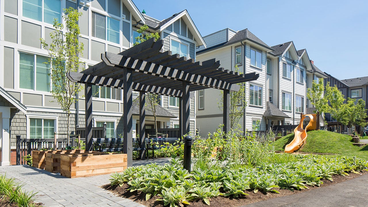 Everly Green – it just feels like home. You don’t have to go far to realize you’re in a different place. Just off the beaten track between downtown Langley and the countryside, is the emerging community of Willoughby. Here, the air is crisp and the echo of childrens laughter can be heard from a nearby baseball field. Lush natural surroundings and mountain views make Everly Green the perfect place to call home.