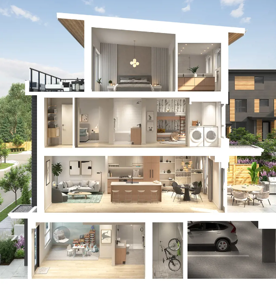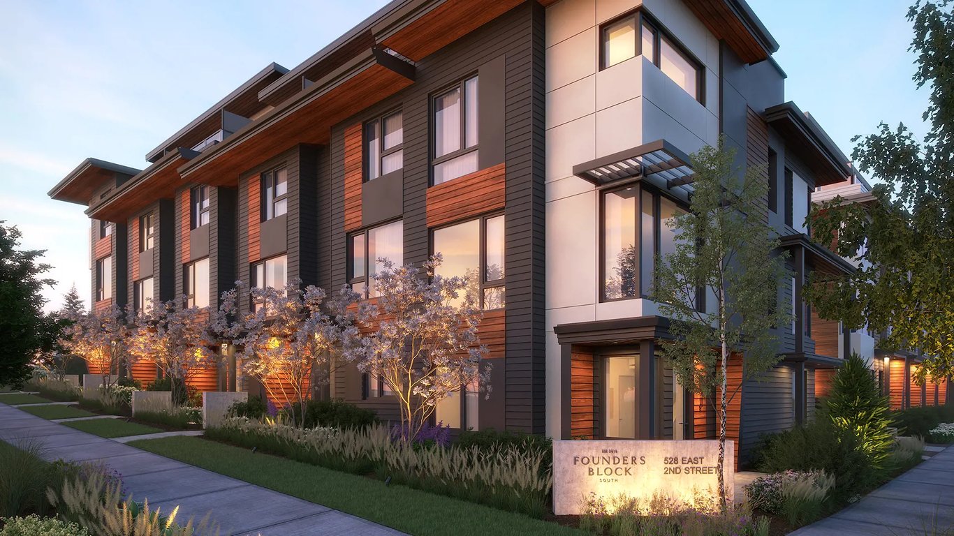 An executive collection of 3 to 4 bedroom + den townhomes, some with lock-off suites. These spacious family homes provide lots of room for your family to grow and offer stunning views of Burrard Inlet and downtown Vancouver.