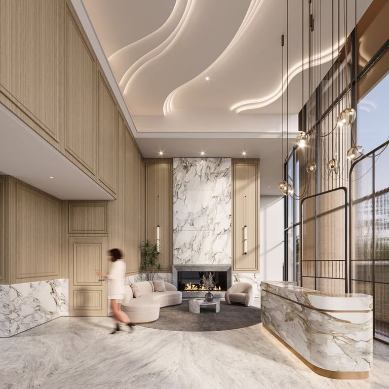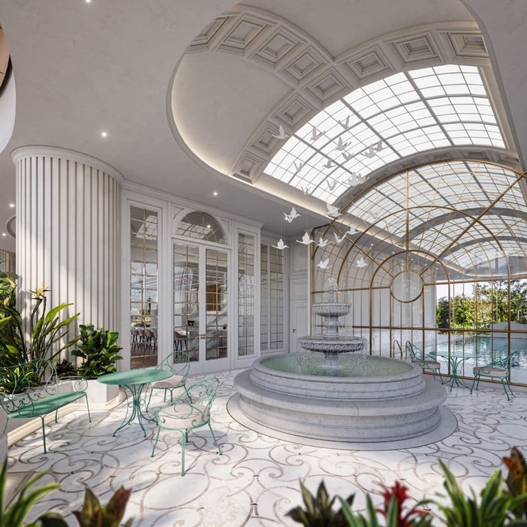Inspired by the refinement of classic conservatories and the grandeur of beaux-arts architecture, Greenhouse is a living masterpiece that elegantly captures the opulence of royal gardens. The exterior facade boasts sinuous curves and flowing waves, harmoniously reflecting the beauty of nature. Every architectural element pays homage to its outdoor surroundings, embracing the lush greenery of Central Park and the serene shores of Deer Lake. Greenhouse stands as a testament to timeless sophistication and natural harmony.