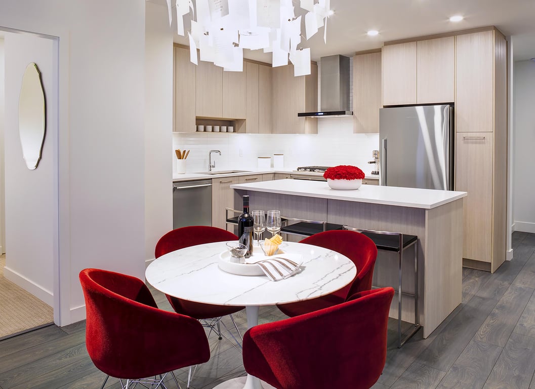 Homes at Highpoint will range from one and den to three bedroom plans, all with 9’ ceilings, expanses of glass, and spacious outdoor decks and patios. Kitchens demand no sacrifice with full-sized appliances and islands and pantries in most homes. When you are ready for R&R you only have to decide between the swanky fireside Sky Lounge on the 51st floor, the games room, fitness facilities or formal dining lounge and kitchen on the 11th floor.
