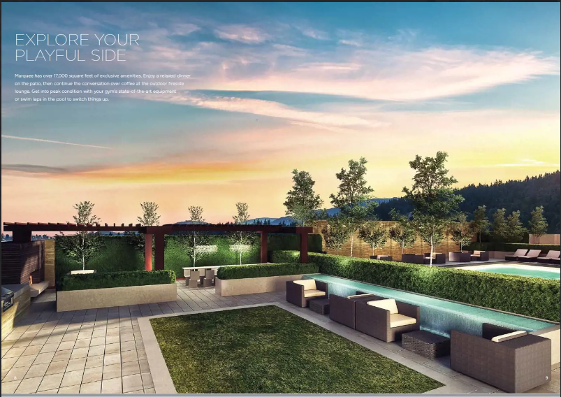 Marquee at Lougheed Heights: Penthouse – The final opportunity at Marquee. Innovative is the way it looks and innovative is the way it lives, with architecture, a floor plan and amenities that win hearts. Marquee enjoys over 17,000 square feet of its own playful space, including a sun-soaked pool and deck with relaxing loungers; barbecue terrace with outdoor fireplace; social lounge with kitchen and dining room, and a fully equipped gym.