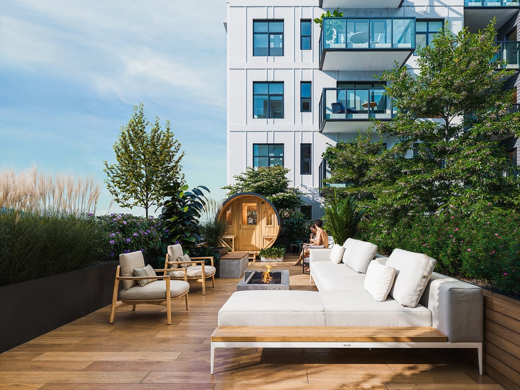Purposefully designed amenities redefine connections — an expansive gathering room, dedicated workspaces, and a delightful children’s nook. The second-floor outdoor oasis, featuring a playground, seating, fire pit, dining area, and BBQ, transforms Mary Anne’s Place into more than a residence—it becomes your ultimate home, your community.