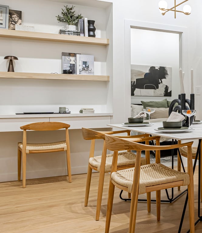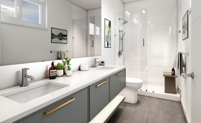 Park & Maven’s urban homes are outfitted with striking cedar plank entry canopies that welcome visitors into distinctive double height lobbies which feature richly stained wood paneled walls, accent lighting, stone flooring, and floor to ceiling glazing in all common areas.
