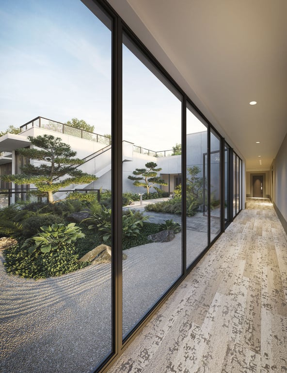 Featuring large, thoughtful floor plans that take their inspiration from the single family home, these exclusive residences are private paradises with large individual outdoor spaces. The expansive courtyard with atrium areas and west coast modern inspired spa amenity space is the crowning jewel of this limited release of sixty-three residences that offers the rarest of opportunities to call this esteemed community home.