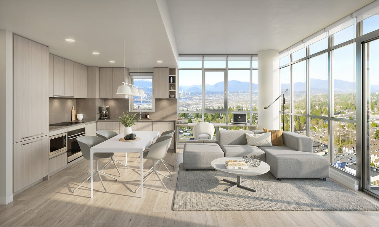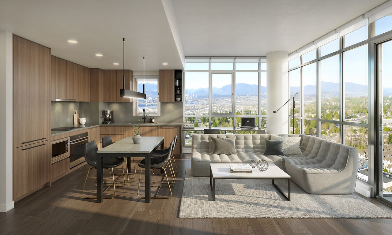 Soaring 29 storeys above North Delta’s skyline, BM Group’s stunning new mixed-use concrete tower, Walker House, will offer unobstructed sweeping vistas of the Fraser River, mountains, and urban landscape.