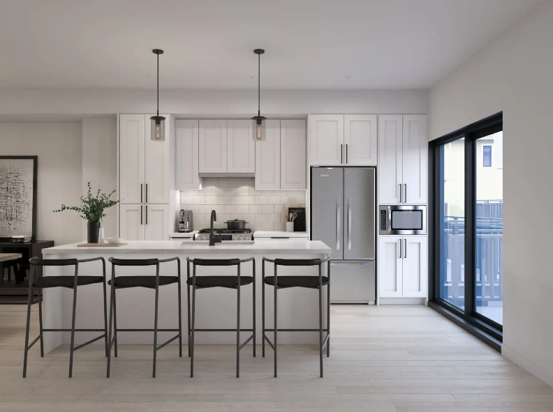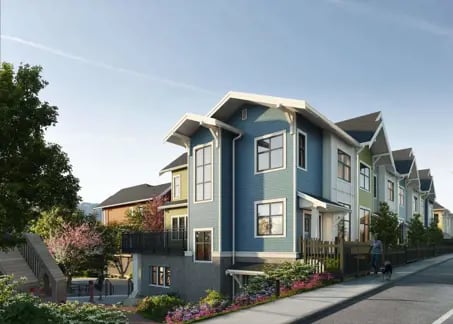 A brick base firmly roots the homes in the landscape. Durable siding and detailing is shared by all buildings to provide cohesion. And the roofline sat Will alternate from large nested gables with deep overhangs to hipped roofs that give each home a unique character.